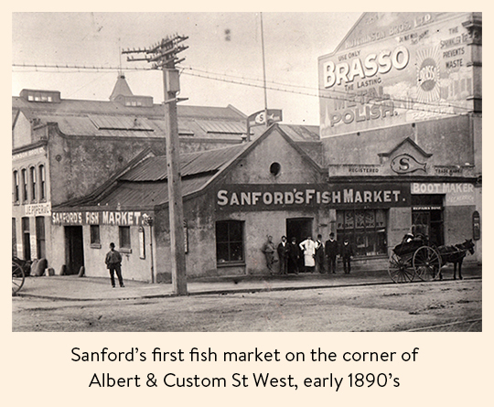 In 1894 Sanford established a fish market on the corner of Albert Street and Customs Street. By this time he was already buying fish from other fishermen. In the 1890s Sanford began to expand outside Auckland, buying a factory complete with an ice plant in Thames, which was then one of the major towns in the region. The Thames branch became a very active part of the business and was managed by one of his sons, George.