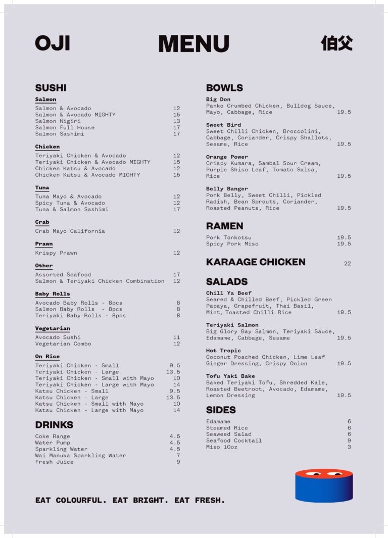 Fresh sushi rolled daily, sashimi, sandos, donburi bowls, and salads.