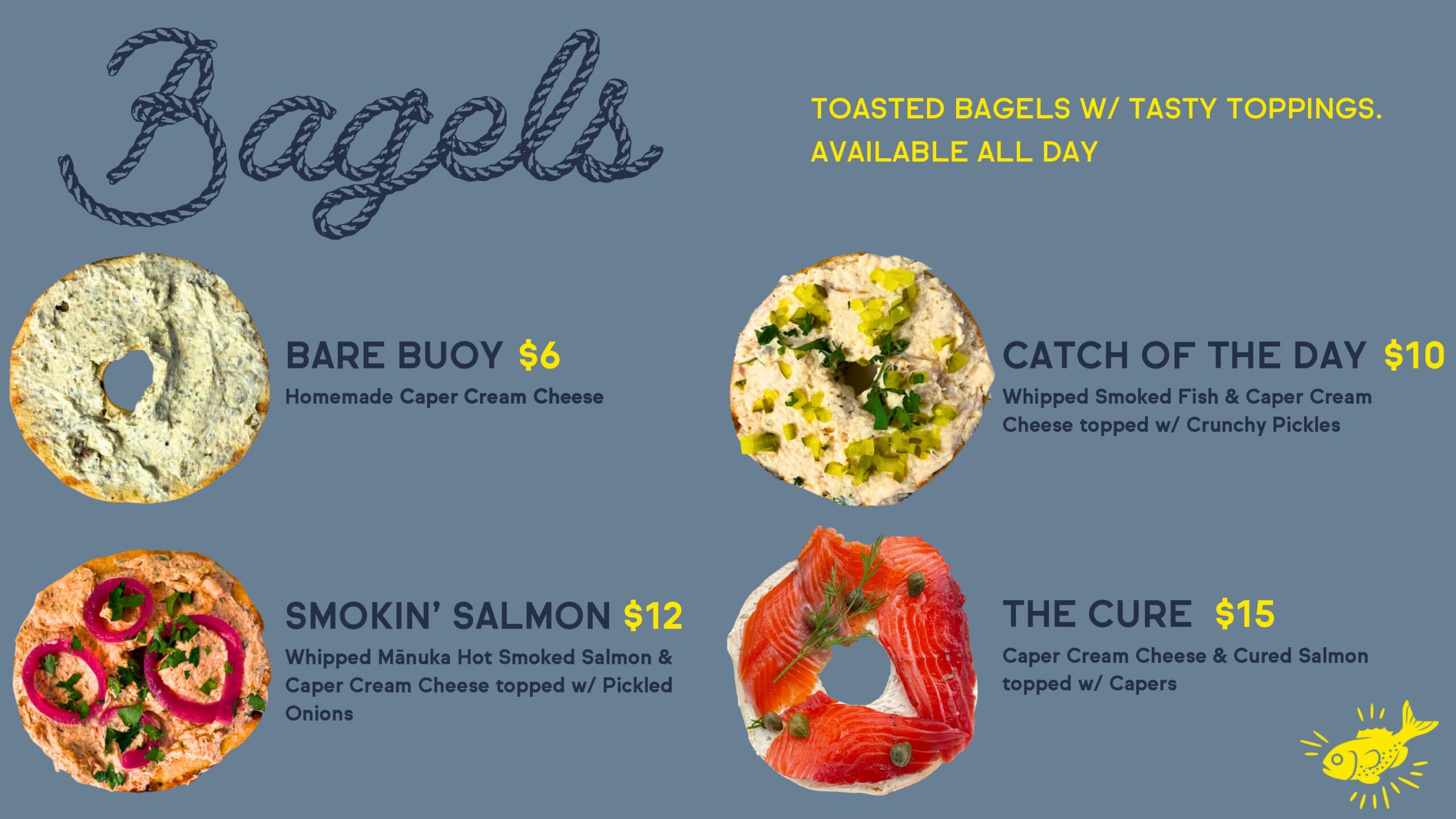 We have everything from Ika Mate- Salmon Bagels and seasonal soups all using the Sanford seasonal seafood range. Select what you want from what’s on display to try a large range of different delicious items. Get stuck in!