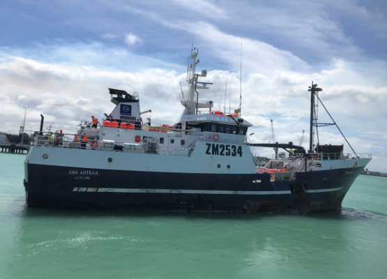 The San Aotea II is an automated bottom longliner. It targets ling in the Sub-Antarctic, Chatham Rise and off the coast of Southland for nine months of the year. From December through February, the San Aotea II goes fishing for Antarctic toothfish in the Ross Sea. Once the Antarctic toothfish season closes, a scientific survey is carried out to support the Commission for Conservation of Antarctic Marine Living Resources (CCAMLR).