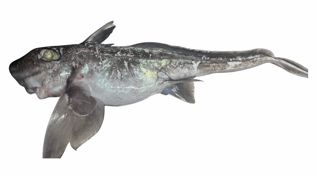 This species is characterised by a paler golden-brown dorsal surface, fading to white on the belly, and lacks the dark mottling or spots seen on the Dark Ghost Shark. It has a blunt, rounded head, large eyes, very large pectoral fins, a long tapering tail, and soft, delicate skin that can be easily damaged. Pale Ghost Shark is caught year-round, with commercial specimens typically measuring 50–80 cm in length (excluding the tail filament) and weighing 600 g–1.5 kg. It yields white, firm, and moist fillets with a mild, sweet flavour, making it highly versatile in the kitchen. It is ideal for frying (especially for fish and chips), baking, poaching, and steaming. The species is managed under New Zealand’s Quota Management System (QMS) as part of the total Ghost Shark species catch, ensuring sustainable harvesting.